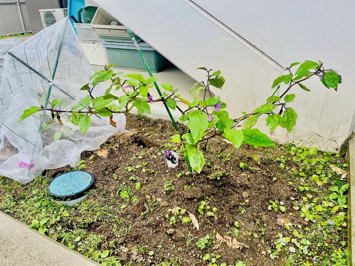 保育園の玄関にある花壇と奥の小さな畑。子どもたちといろんな栽培物を季節ごとに植えています。