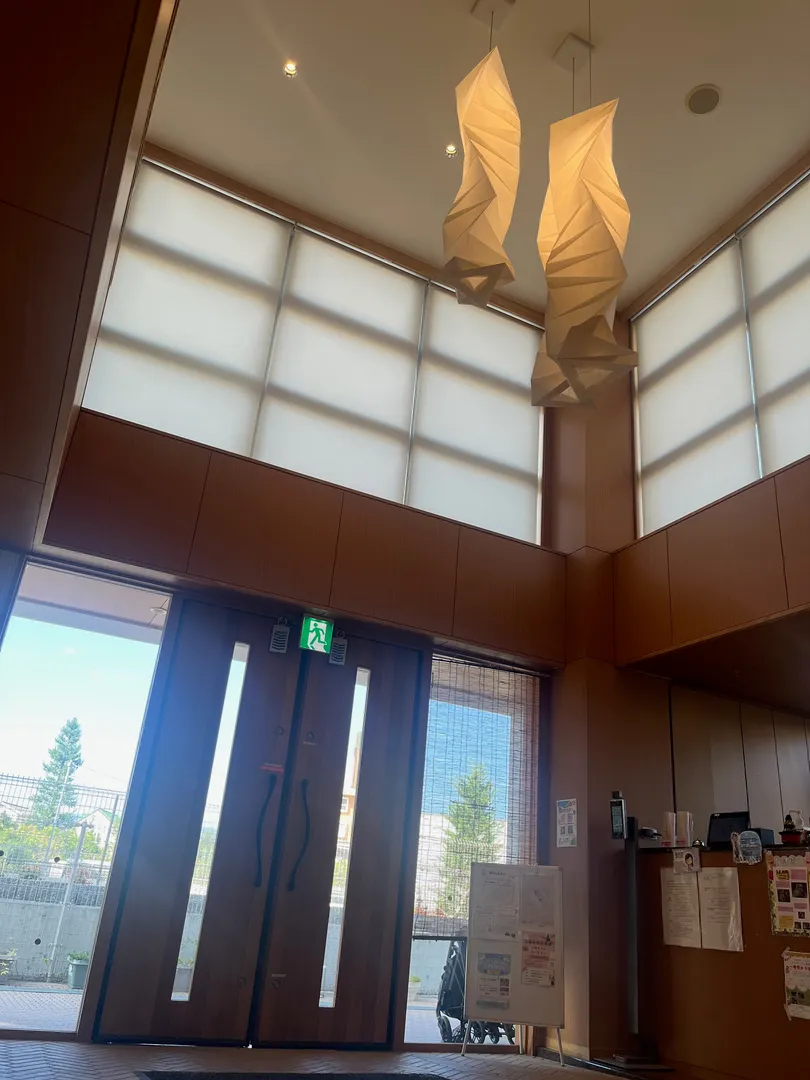 吹き抜けの高い天井で開放感があるスペースが子どもたちを毎朝迎えてくれています