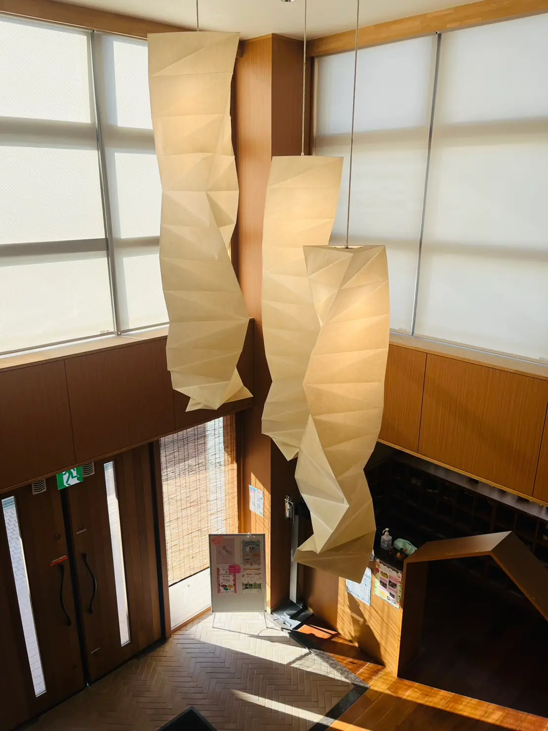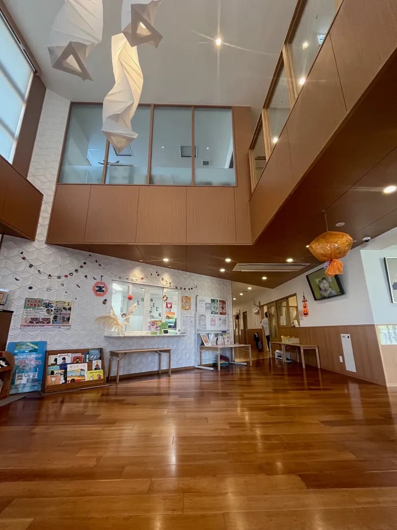 吹き抜けの高い天井で開放感があるスペースが子どもたちを毎朝迎えてくれています