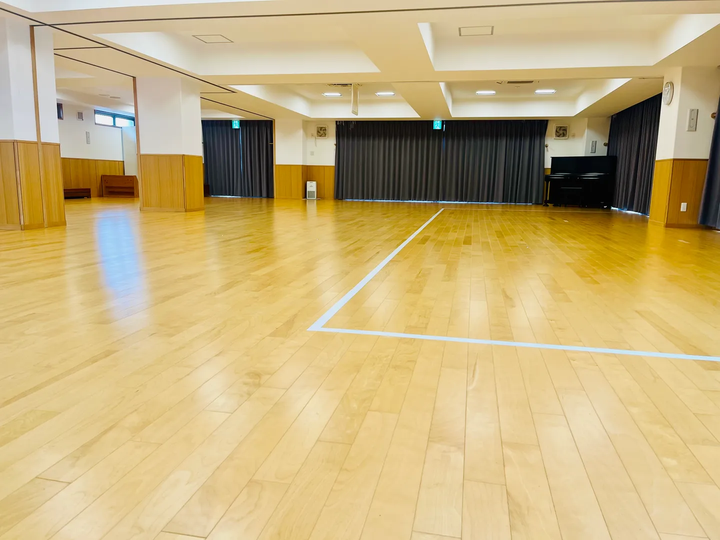 広い広い遊戯室。雨で戸外に出られない日はここで体を動かして過ごします。ベビーマッサージなどの子育て支援活動で地域の方にも遊びにきていただいています。