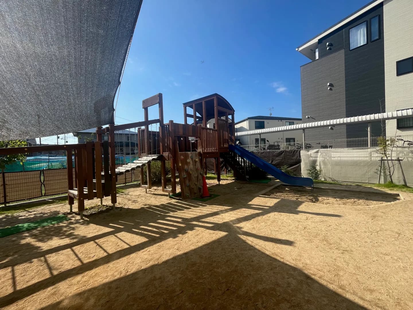 乳児クラスさんにも幼児クラスさんにも大人気の遊具です。 最初はちょっと難しいロッククライミングもうんていも「やってみたい」の気持ちでどんどんチャレンジしています。 乳児クラスさんもお兄ちゃんお姉ちゃんの真似っこをして楽しんでいます。