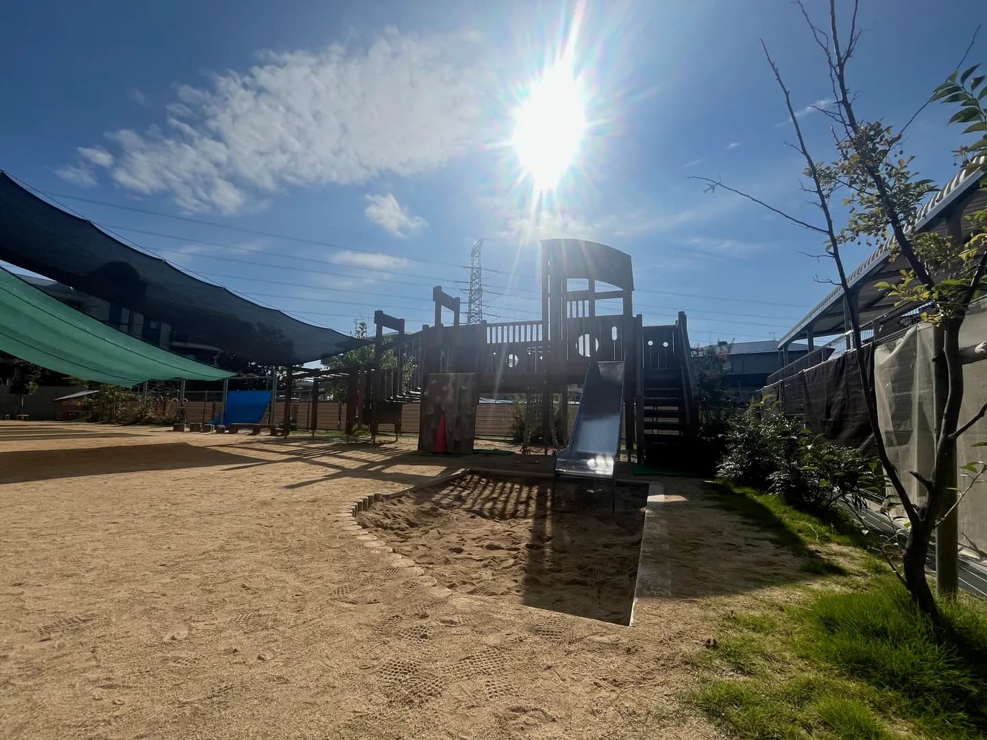 こどもたちのお気に入りスポットです。シャボン玉をしたり、外を眺めたり・・ゆったりと風にあたって過ごします。
