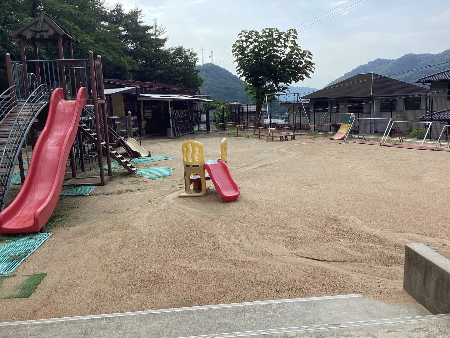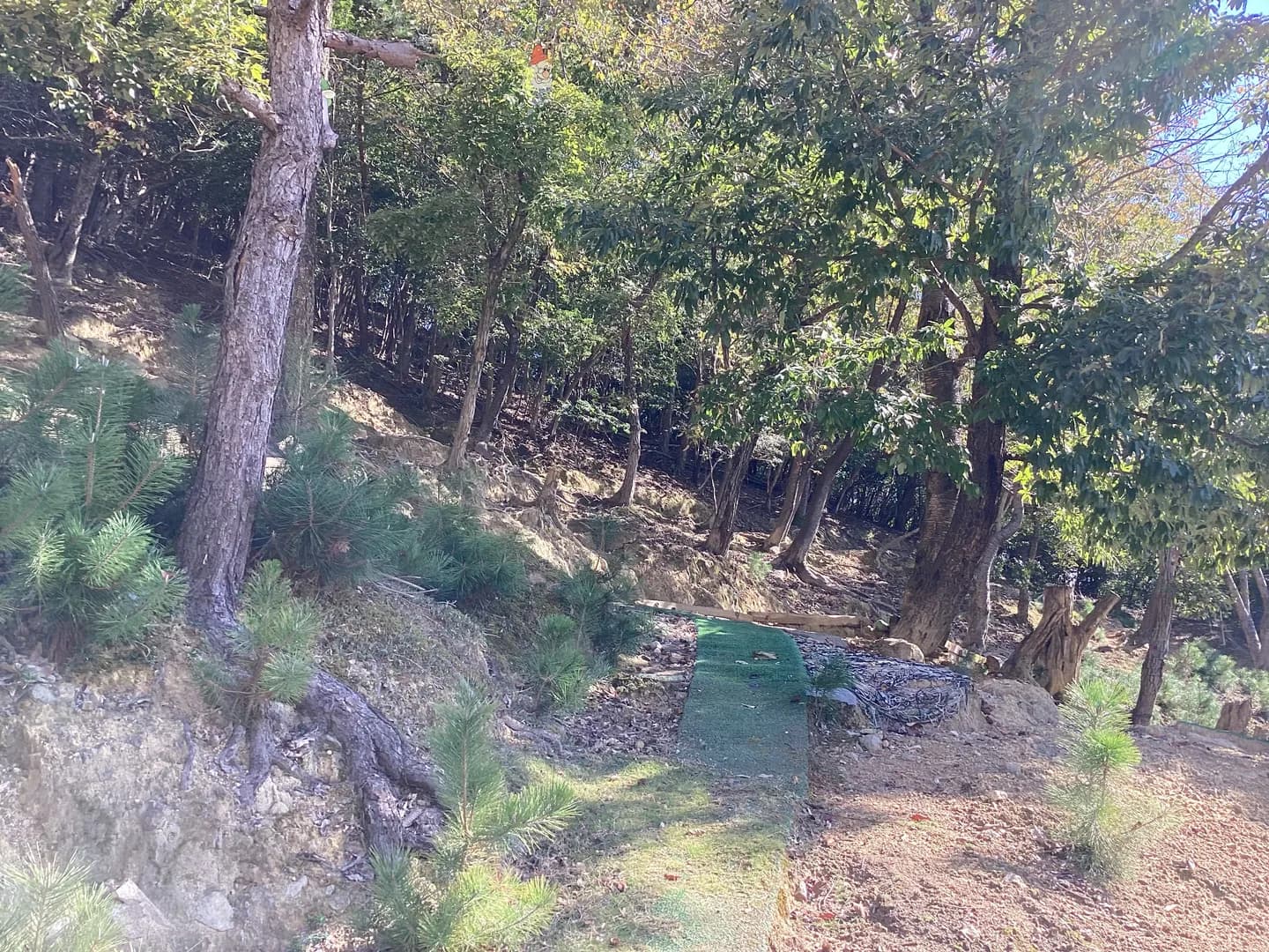 園庭の裏には山があり、秋にはどんぐり、まつぼっくりを拾いをしたり、山を駆け登ったりしています。 初夏にも涼しい木陰を作ってくれ、裏山遊びができます。