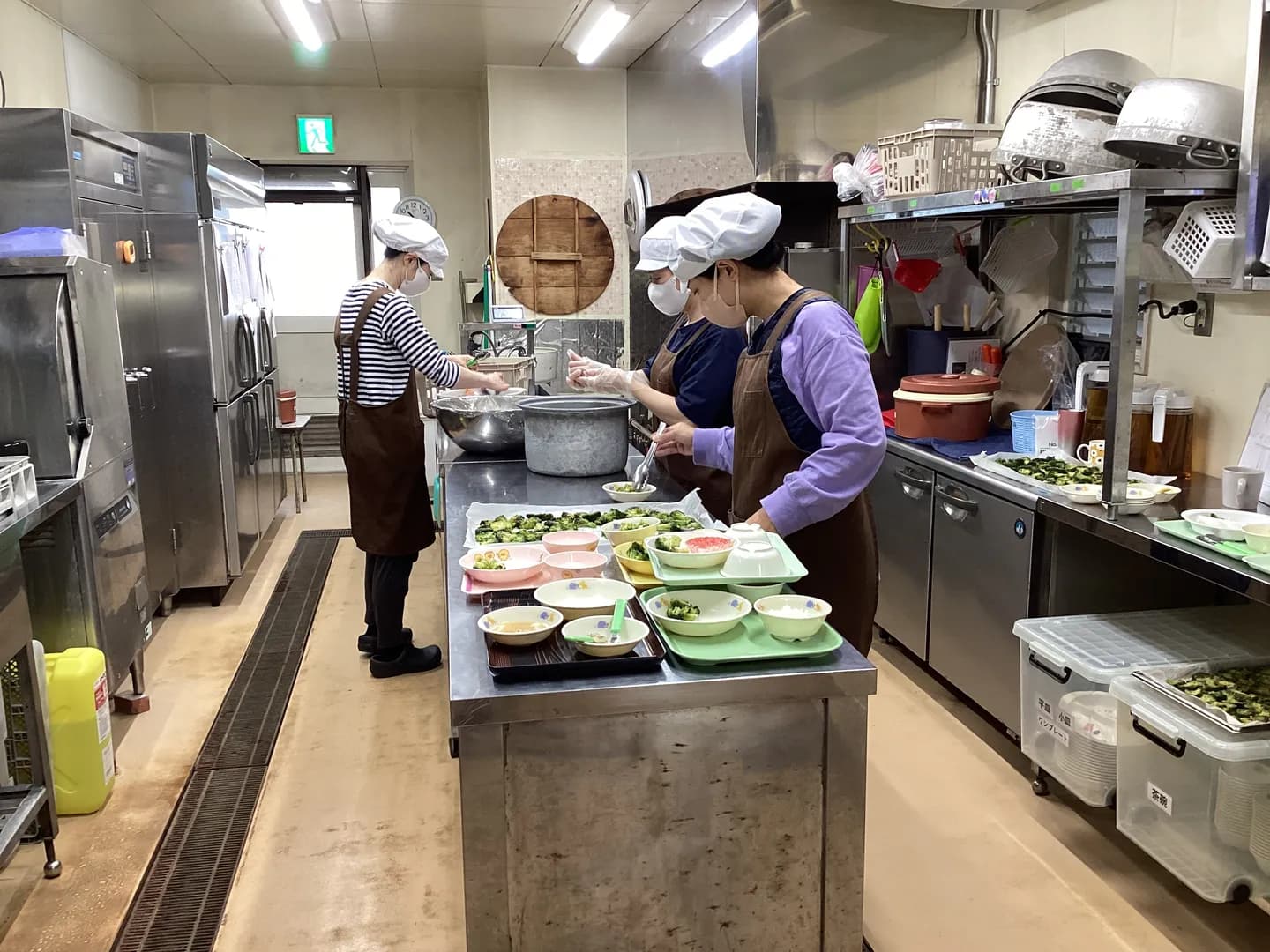 玄関を入ると美味しい匂いが漂い、玄関に飾られているメニューをチェックしています。 子どもたちも、職員も楽しみにしている給食です。