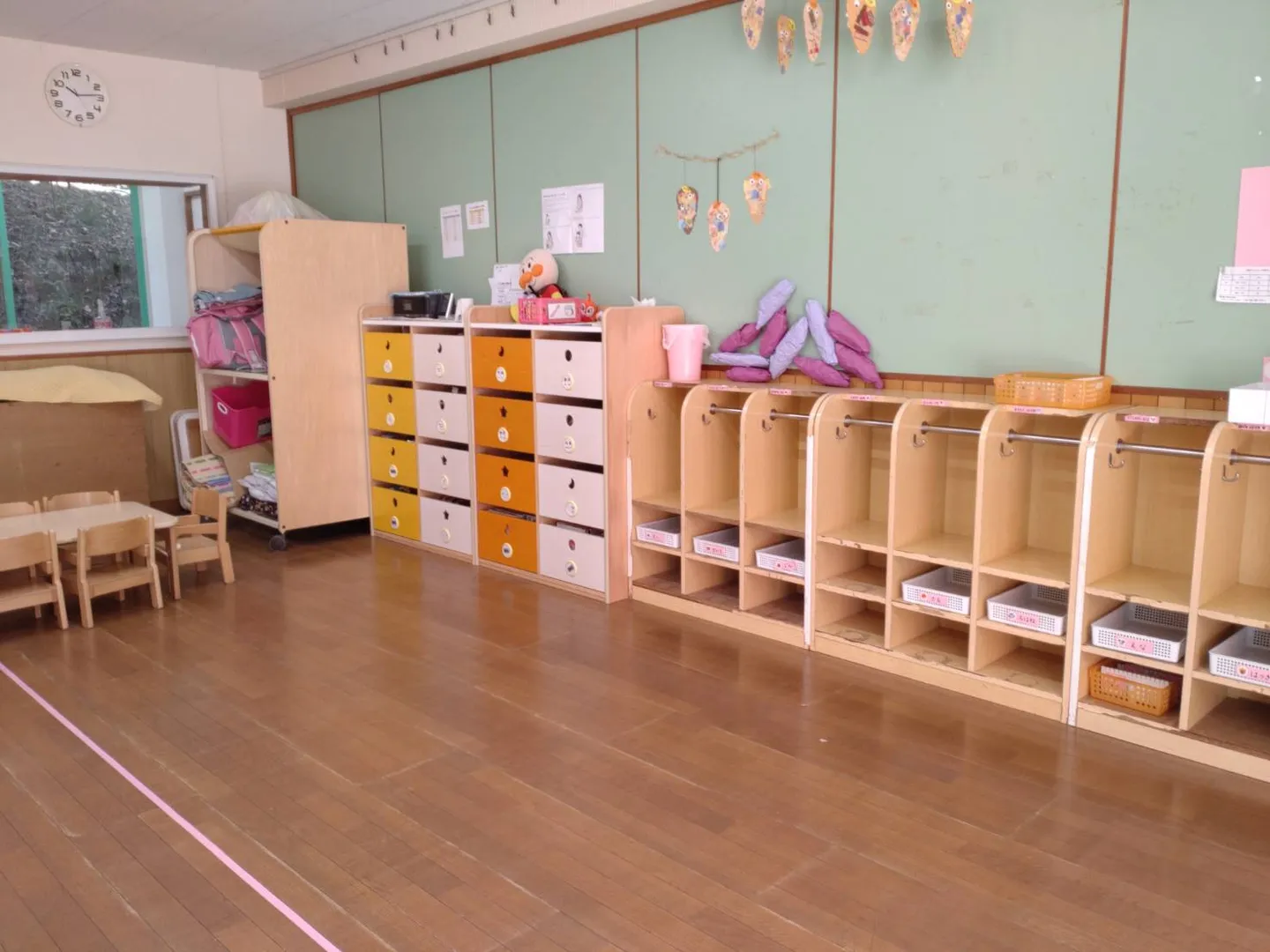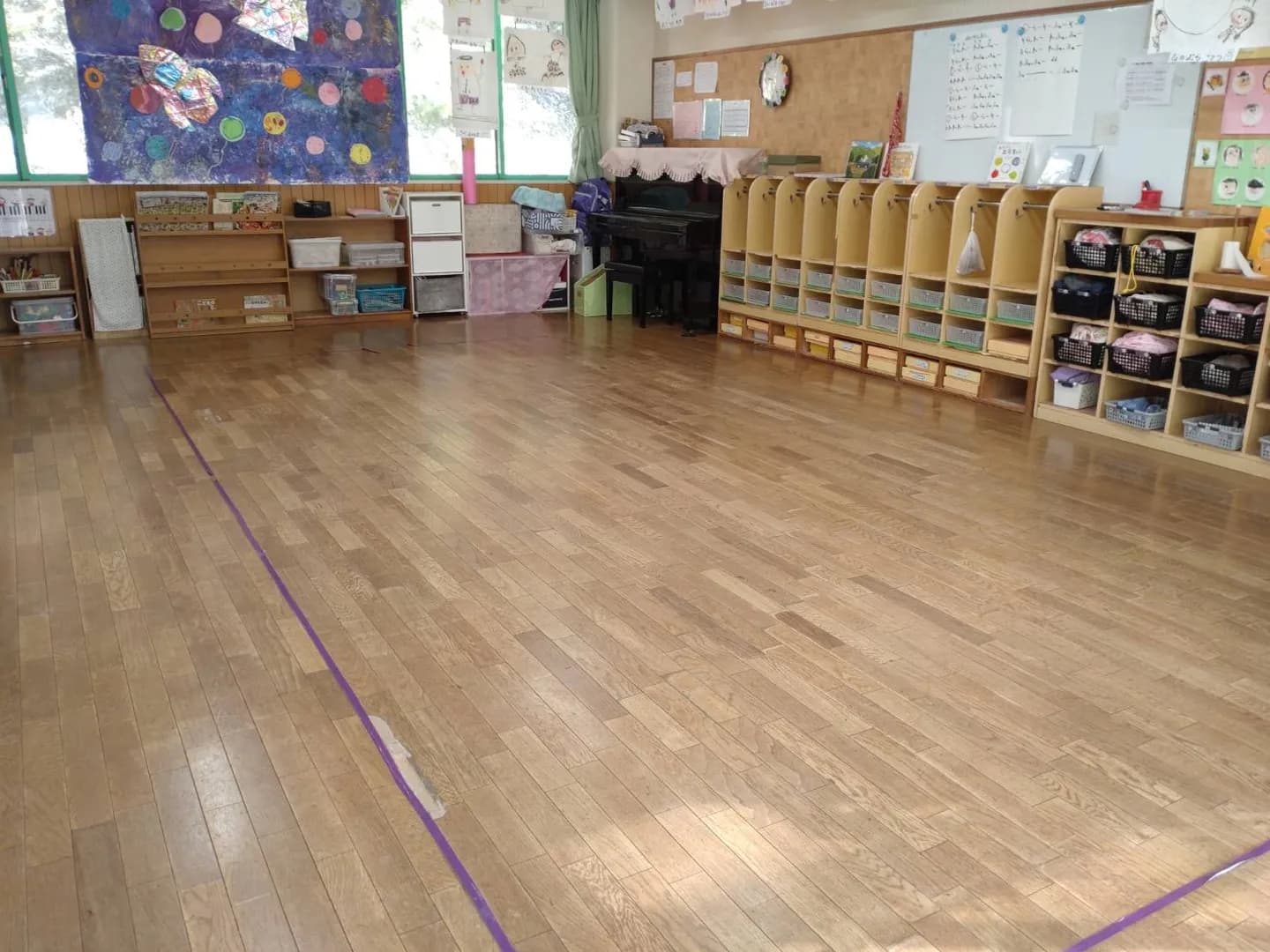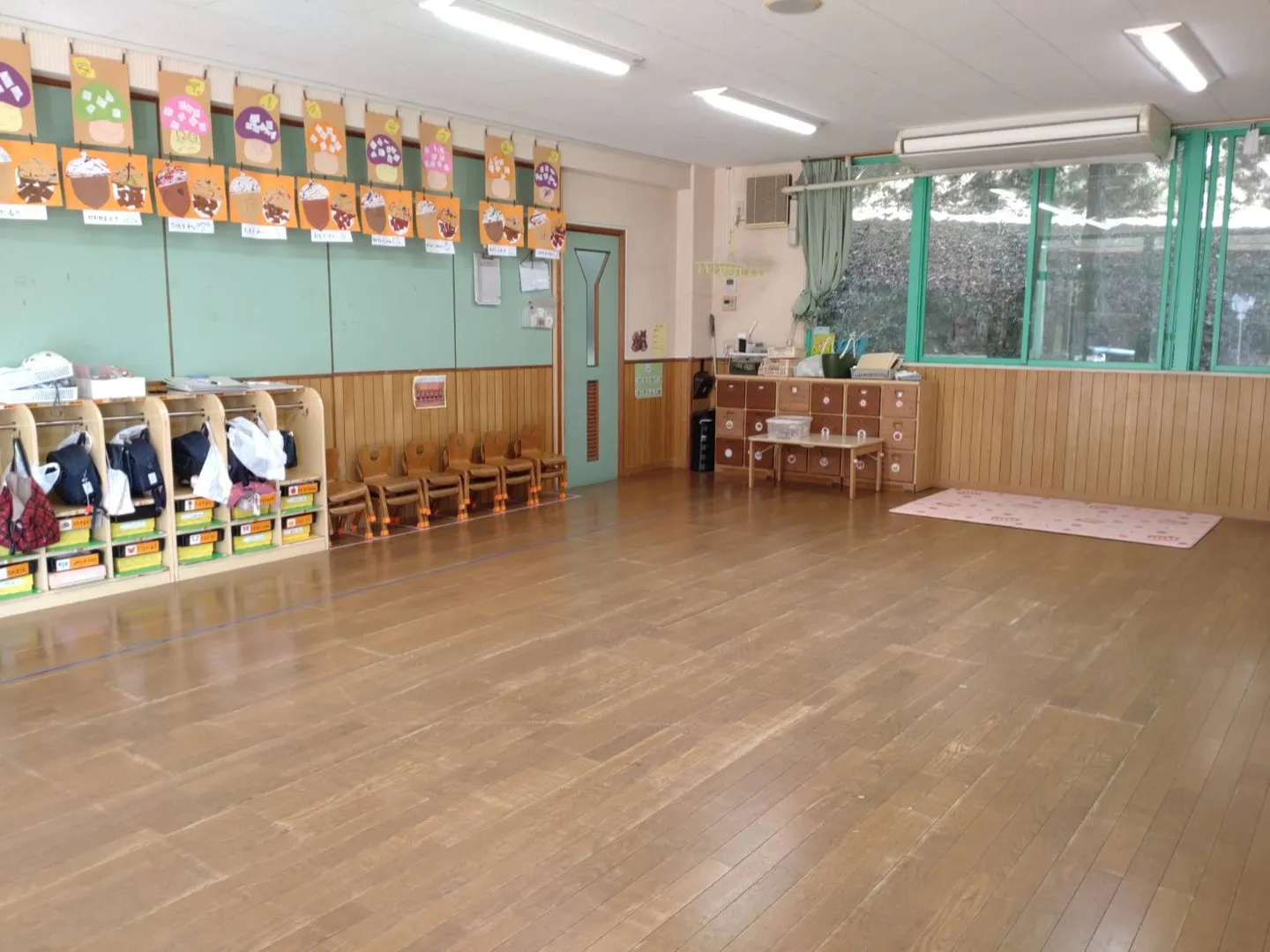 広い遊戯室では、運動遊び・誕生会・リズム遊びなど様々な遊びを行っています。 各年齢の応じてのびのび楽しんでいます。
